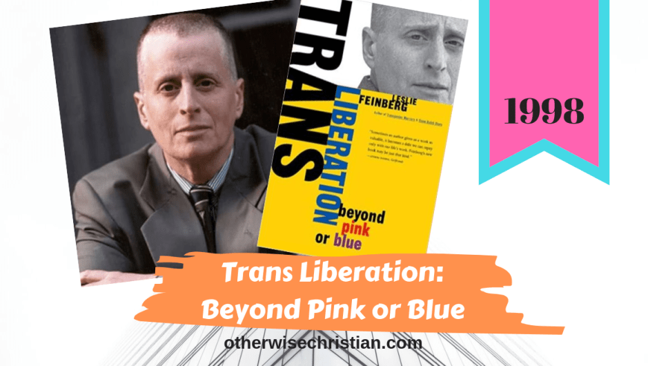 Transgender Liberation: Beyond Pink or Blue is Feinberg’s 1998 book. It is a collection of speeches, with a few individual profiles of transgender people woven in. It’s a great resource for thinking about how things were back in 1997 or 1998, during the “transgender spring.” While Feinberg is not writing from a Christian point of view, ze push on all of the edges of what organized back then.